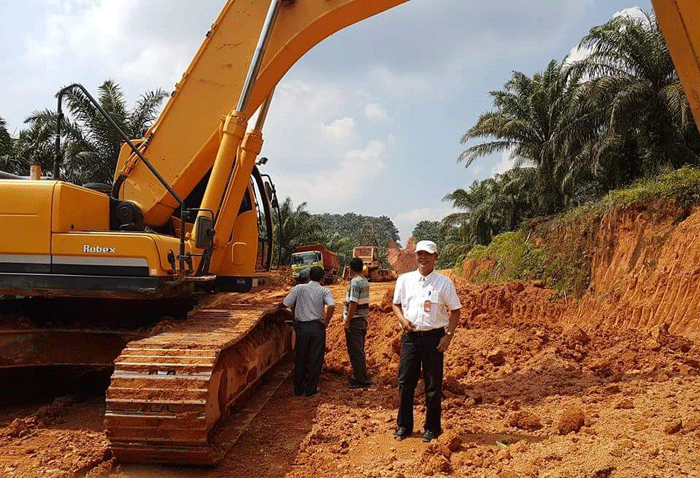 Kadis PU Bintan, Juni Rianto sedang meninjau pelaksanaan pembangunan Jalur Lintas Timur di Jalan Tirta Madu, Kecamatan Gunung Kijang. Foto: Dinas PU.