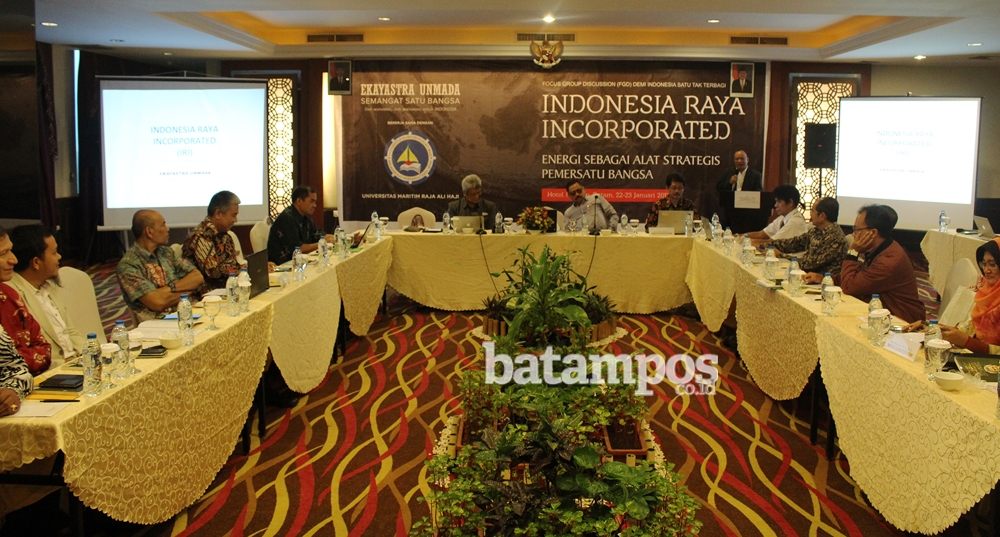 Bertemakan, “Indonesia Raya Incorporated, Energi sebagai Alat Strategis Pemersatu Bangsa” di Batam, FGD antara lain dihadiri Prof Dr Ir Darsono MSi (Universitas Negeri Sebelas Maret), Dr Syamsudin (Universitas Muhammadiyah), Prof. Mudrajad Kuncoro, Ph.D (Universitas Gadjah Mada), Prof. Dr Munawar Ismail, DEA (Universitas Brawijaya), Prof. Dr Tulus Tambunan (Universitas Trisakti), Sari Wahyuni, Ph.D (Universitas Indonesia), Winata Wira SE, M.Ec (Universitas Maritim Raja Ali Haji); Dr. Ir. Bernaulus Saragih M.Sc. (Universitas Mulawarman), DR. Y Tri Susilo, M.Si (Universitas Atma Jaya Yogyakarta), DR. Agus Trihatmoko (Universitas Surakarta), Prof Dr Werry Darta Taifur SE Ma (Universitas Andalas), Prof Dr Syafir Akhlus MSc (Universitas Maritim Raja Ali Haji), dan perwakilan Persatuan Purnawiran Angkatan Darat (PPAD) serta AM Putut Prabantoro, selaku Ketua Pelaksana Gerakan Ekayastra Unmada-Semangat Satu Bangsa.