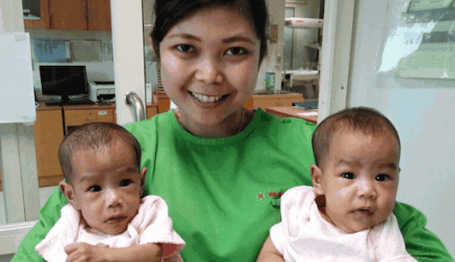Keduanya terlihat semakin aktif dan suka rebutan mainan. Hanya saja si kakak, Rahma, masih perlu perawatan lebih khusus lagi karena kondisinya memiliki kelainan jantung. Satu bilik di jantungnya tak berkembang.