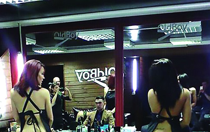 Ya, dalam iklan yang disebarluaskan lewat media sosial, tampak pria-pria di Old Boy dilayani barber superseksi. Ada yang berambut hitam, memakai bra dan thong saja. Satu lagi cewek berambut merah mengenakan celemek panjang. Tapi tanpa memakai apa-apa di bawahnya. Pose mereka saat memotong rambut klien juga menggoda.
