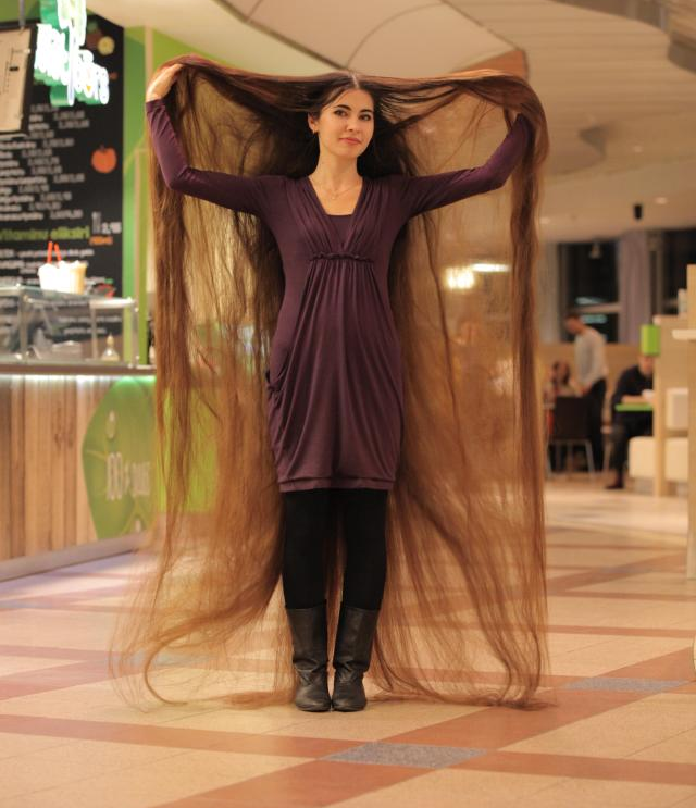 batampos.co.id – Aliia Nasyrova, perempuan asal Riga, Latvia, memanjangkan rambut sampai 2,29 meter. Nasyrova memelihara rambut panjang kecokelatannya itu selama dua dekade.