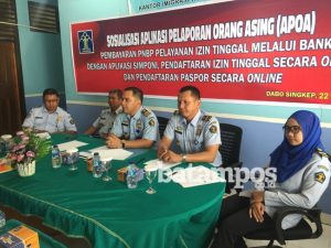 “Bagi siapa saja yang memberikan penginapan atau tempat tinggal bagi orang asing wajib untuk melaporkannya,” ujar Bugie saat ditemui dalam kegiatan sosialisasi Aplikasi Pelaporan Orang Asing (APOA) di aula Kantor Imigrasi kelas III Dabo Singkep, Rabu (22/3) pagi.