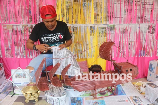 Seperti yang dilakukan Andi, 30, di teras rumahnya yang sederhana di perumahan Bandara Asri jalan Lembah Merpati Tanjungpinang, ia membuka Galeri Zio Art yang terdapat beberapa macam aksesoris kerajinan kertas atau paper craft seperi miniatur kapal layar, vas bunga, miniatur motor harley, tanjak mini, bingkai foto dan lampu hias yang semuanya terbuat dari koran bekas.