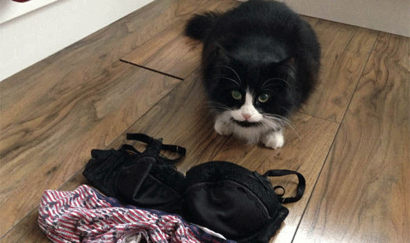 Dalam sebulan, kucing tersebut bisa menggondol hingga 20 potong pakaian. Reginald sering memamerkan curiannya kepada Brickell.
