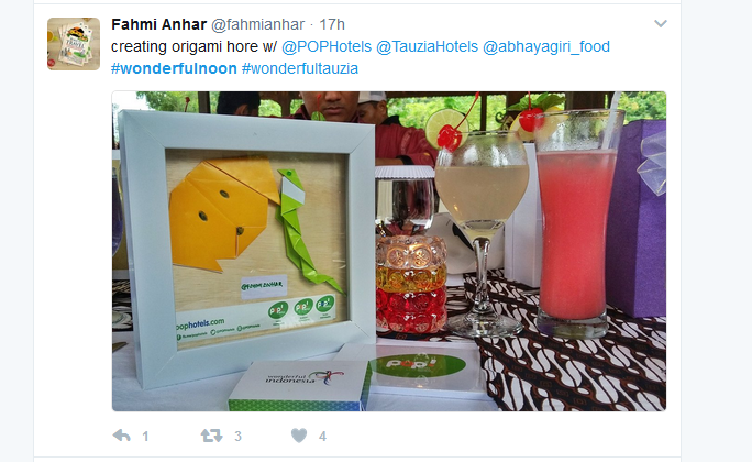 Mau lihat akun yang mana? Arief Rahman Hakim dengan akun explorejogja yang difollow 466 ribu netizen?. Hery Hermawan dengan akun jogjaku yang di follow 383 ribu netizen? Atau Kurniadi Novianto dengan akun yogyakartacity yang difollow 97.100 orang? Bersama puluhan penggiat sosial media, ketiganya kompak mempromosikan #wonderfulnoon, hotel Abhayagiri dan Kemenpar menjadi cuitan di dunia maya.