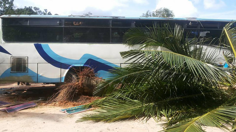 “Kejadian sangat cepat, kendaraan langsung meluncur cepat dan tiba-tiba berhenti di pohon kelapa,” ujarnya