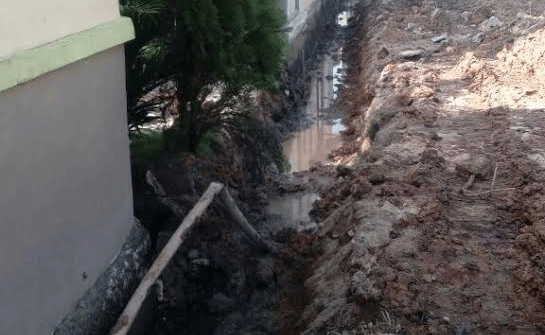 Saat ini, pihaknya belum bisa melakukan perbaikan mengingat petugas dari Dinas PU masih terus melakukan pekerjaan drainase.