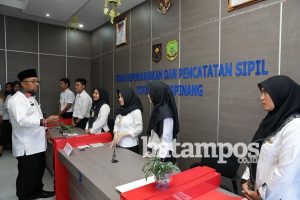 batampos.co.id – Walikota Tanjungpinang, Lis Darmansyah meresmikan Ruang Pelayanan Administrasi Dinas Kependudukan dan Catatan Sipil (Disdukcapil) Tanjungpinang di Kijang Lama, Batu 6, Rabu (5/7). Meskipun telah diresmikan pengurusan pembuatan KTP Elektronik (E-KTP) masih terkendala sampai saat ini.