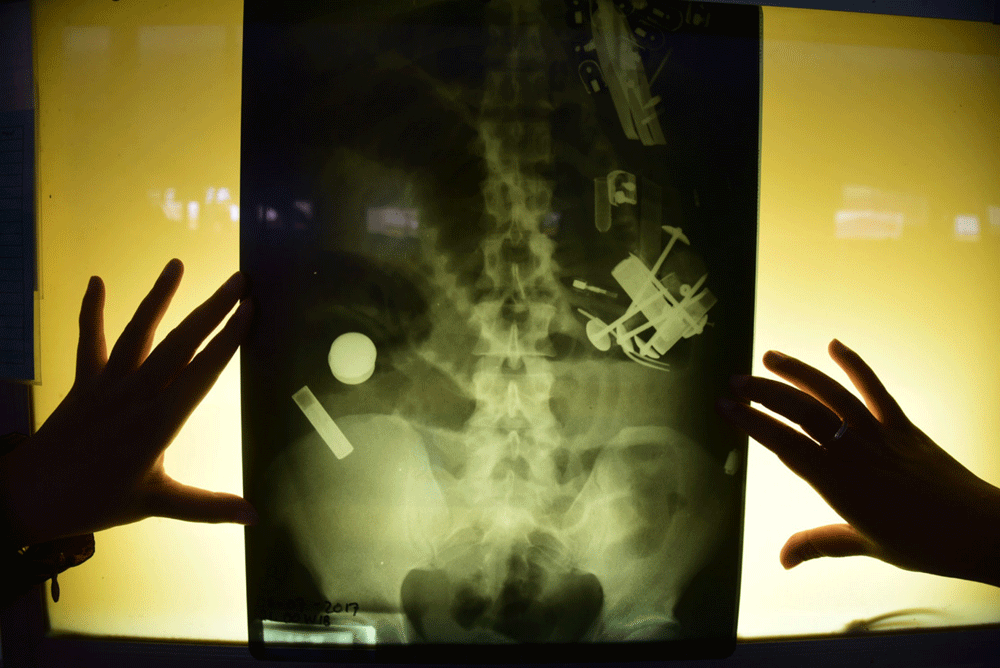 ”Dengan kondisi itu, memang kemungkinan besar benda-benda seperti paku, paku payung, dan bentuk pisau itu masuk melalui oral alias mulut,” katanya.