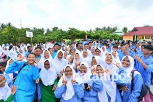 “Narkoba, No. Prestasi, Yes. Kepri, Jaya,” ajak Nurdin kepada anak-anak untuk mengumandangkan semangat tersebut. (bni)