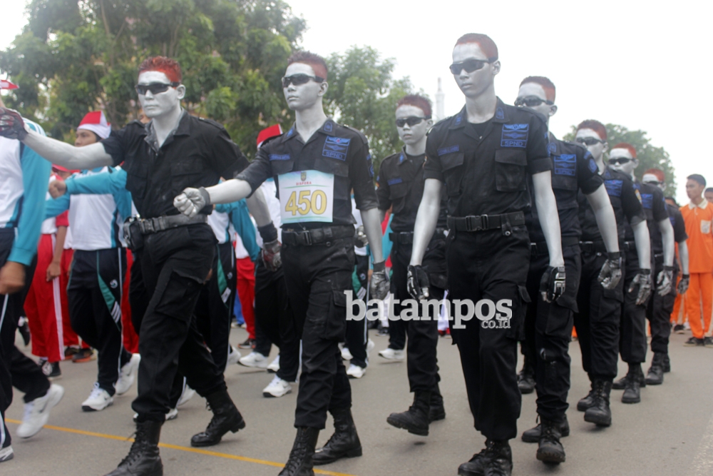 Banyak dari peserta yang mengenakan kostum unik untuk mencuri perhatian. Seperti anggota Yonif Raider 136/TS yang mengecat wajahnya dengan cat loreng-loreng khas tentara. “Ingin memeriahkan saja,” ujar salah satu anggota Yonif Raider 136/TS, Rizal kepada Batam Pos, Sabtu (12/8).