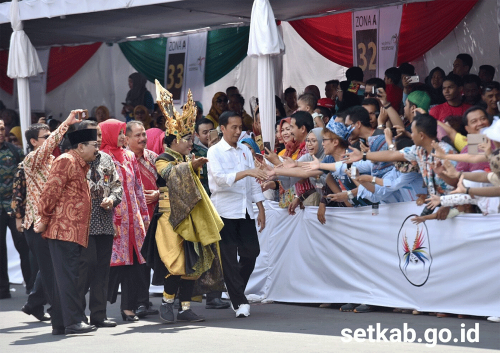 Presiden Joko Widodo menjadi saksi kebanggaan, kehebohan, kemeriahan, dan kesuksesan pesona Jember Fashion Carnaval 2017. Di Alun-alun Kab Jember, Jawa Timur, Minggu, 13 Agustus 2017, Presiden Joko Widodo bersama Ibu Negara Iriana Joko Widodo bakal melihat detail kostum dengan tema Victory itu.