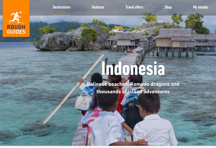 Dalam daftar destinasi, Rough Guides membuat tulisan sekilas pandang tentang Indonesia sebagai negeri yang membentang sepanjang 5.200 kilometer antara daratan utama Asia hingga Australia. Indonesia adalah negeri tropis dengan lebih dari 17.000 pulau.