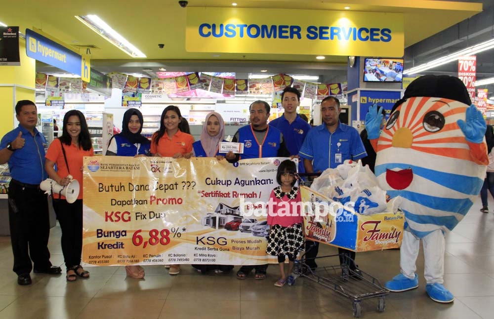 Jaenudin datang bersama istrinya, Tri Maryani dan anak perempuannya, Aisha Ghina Syakira, Sabtu (16/9) sore. Sebelum Family Shopping (famshop) dimulai, Jaenudin diberi pengarahan panitia acara famshop, Cindy dan Andri serta Gudson mengenai tata cara mengikuti program famshop yang digelar Batam Pos bekerjasama dengan BPR Sejahtera Batam (SB) tiap seminggu sekali ini.