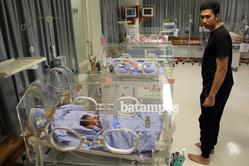 Jarum jam menunjukkan pukul 10.50 WIB. Tim dokter Rumah Sakit Awal Bros Batam sedang berupaya membantu kelahiran bayi kembar tiga dari pasangan