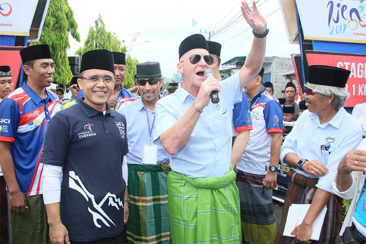 Sebelum balapan dimulai, para pembalap serta panitia lomba dari Federasi Sepeda Internasional (UCI) turut serta mengenakan sarung dan kopiah.