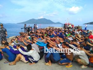 batampos.co.id – Satuan Kerja (Satker) Pengawasan Sumber Daya Kelautan dan Perikanan (PSDKP) Natuna, memulangkan 106 nelayan asing asal Vietnam, Senin (2/10). Mereka diamankan PSDKP, Lanal Ranai maupun dari Imigrasi kelas II Ranai, selama dua bulan terakhir karena melanggar batas wilayah.
