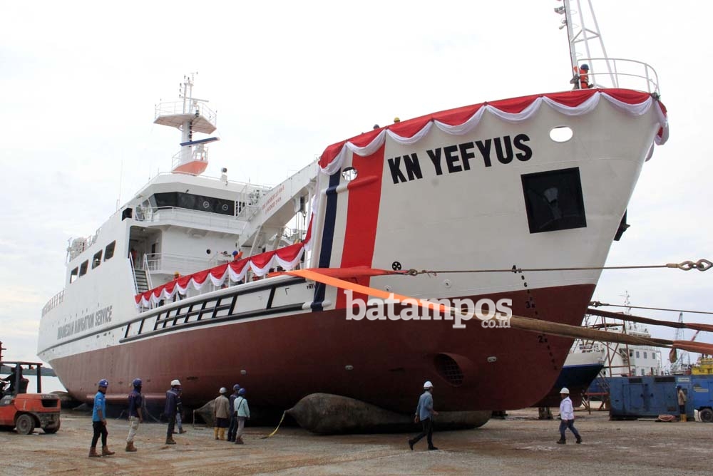 batampos.co.id – PT Palindo Marine meluncurkan satu dari lima kapal kenavigasian pesanan Kementerian Perhubungan (Kemenhub) di galangan kapal perusahaan tersebut, Sagulung, Batam, Kamis (12/10). Peluncuran kapal dengan nama KN Yefyus itu dilakukan bersama Direktur Kenavigasian Kemenhub, I Nyoman Sukayadnya.