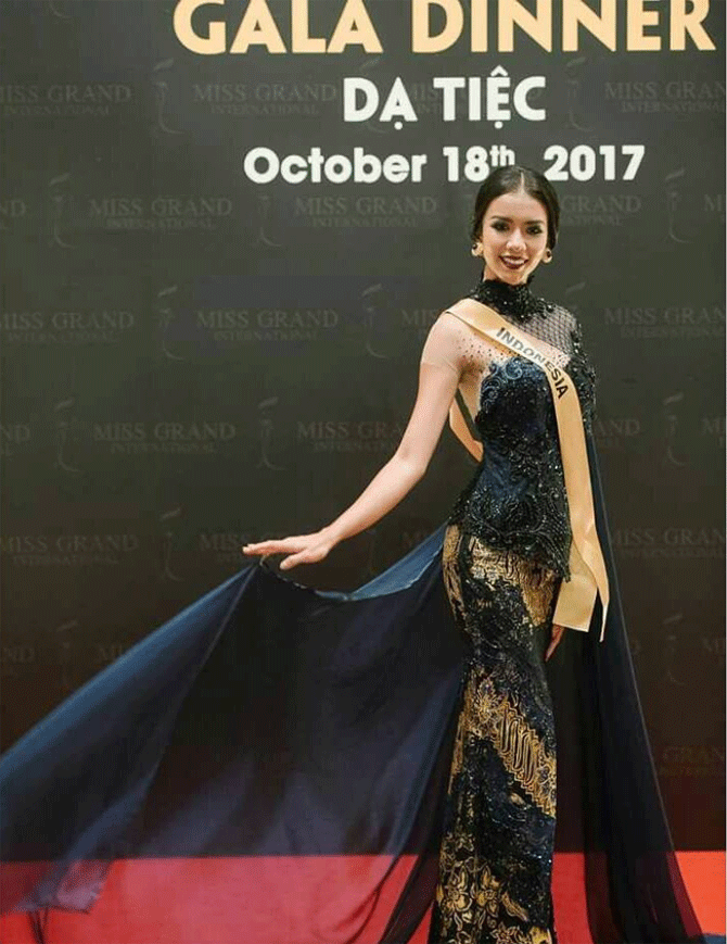 Kostum nasional Dea Rizkita di ajang Miss Grand International 2017 mengundang decak kagum Nick Verreos.