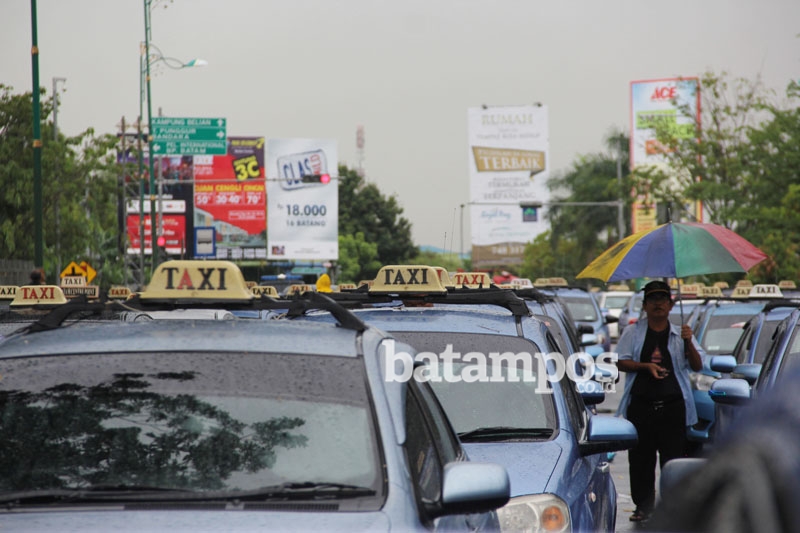 Sementara ratusan pengemudi taksi konvensional demo di depan Kantor Wali Kota Batam dan DPRD Batam, Selasa (31/10). Dalam aksinya itu mereka tegas menolak kehadiran taksi online di Batam.