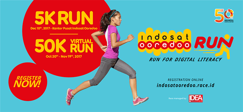 Indosat Ooredoo Run for Digital Literacy, sebuah event lari memeringati ulangtahun ke 50 tahun Indosat Ooredoo.