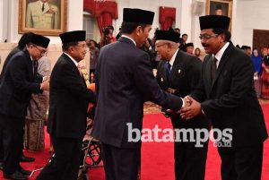 batampos.co.id – Pemerintah menganugerahkan gelar pahlawan nasional kepada Sultan Mahmud Riayat Syah dari Kepri. Hal itu tertuang dalam Keputusan Presiden Nomor 115 Tahun 2017. Upacara penganugerahaan berlangsung Kamis (9/11) di Istana Merdeka, Jakarta, dipimpin Presiden Joko Widodo.