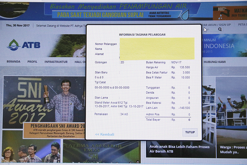 Ilustrasi cek tagihan pembayaran air melalui website ATB Batam. pelanggan yang mengalami lonjakan tagihan pembayaran bisa mendatangi bagian pelayanan ATB Batam untuk di cek penyebab tagihan tinggi.