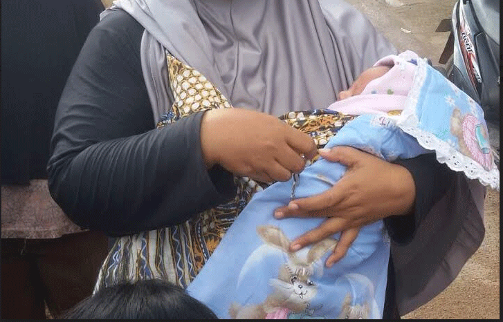Bayi berbobot 3 kilogram itu lalu diserahkan kepada Leni Tumiasri yang bersama warga lainnya lalu membawanya ke Puskesmas untuk mendapatkan perawatan.