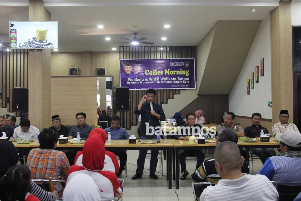 Walikota Batam Muhammad Rudi bersama Wakil Walikota Batam Amsakar Achmad dan OPD berdialog dengan masyarakat Kecamatan Batamkota pada acara coffe morning di Bintang Coffe Batamcenter, Minggu (14/1). Pertemuan tersebut dalam rangka menanggapi keluhan permasalahan yang ada di wilayah kecamatan Batamkota. F Cecep Mulyana/Batam Pos