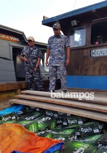 batampos.co.id – Lanal Dabo Singkep mengamankan satu unit Kapal Motor (KM) Samudera 2 GT 15 No.248/PPq 2005 GGa 4902 N di perairan Sungai Buluh beserta muatannya yakni 450 kotak/kis (10.800 kaleng) beer merk carlsberg dan arak putih cap Apek Tua (Apek Botak) sebanyak 60 lusin (720 botol) tanpa dilengkapi dokumen.