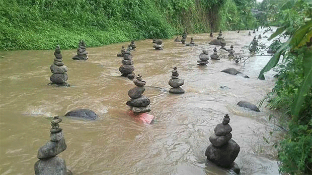 Batu Tersusun di Sungai Cibojong, Kampung Pasirdoton, Kecamatan Cidahu, Kabupaten Sukabumi, Bikin Geger.