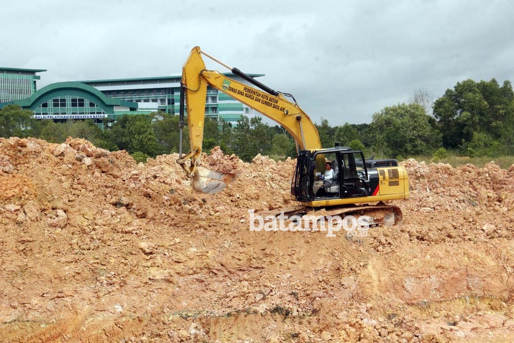 Operator escavator dari Dinas Bina Marga Kota Batam membuat waduk di lahan kosong, Tanjungriau, Sekupang, Jumat (2/2). Waduk ini nantinya untuk menampung air supaya tidak terjadi banjir di Jalan Marina City, Tanjunguncang, Batuaji. Bila hujan datang jalan Marina City selalu banjir.F Dalil Harahap/Batam Pos