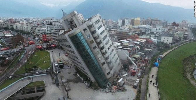 Gempa berkekuatan 6,4 skala richter itu melanda Taiwan menyebabkan gedung-gedung mengalami kerusakan yang parah dan membuat orang-orang terjebak di dalamnya.