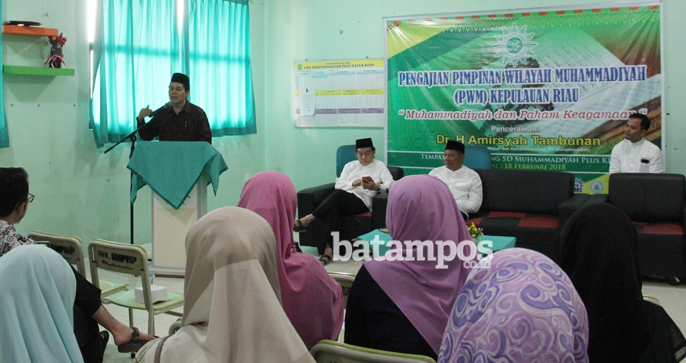 batampos.co.id – Pimpinan Wilayah (PW) Muhammadiyah Kepri menggelar pengajian bertemakan Muhammadiyah dan Paham Keagamaan di Aula Gedung SD Muhammadiyah Plus KDA Batamcenter, Minggu (18/2) pagi. Pengajian yang dihadiri 150 kader Muhammadiyah ini mendatangkan Wakil Sekjen MUI Pusat Ustand Dr Amirsyah Tambunan sebagai pembicara.