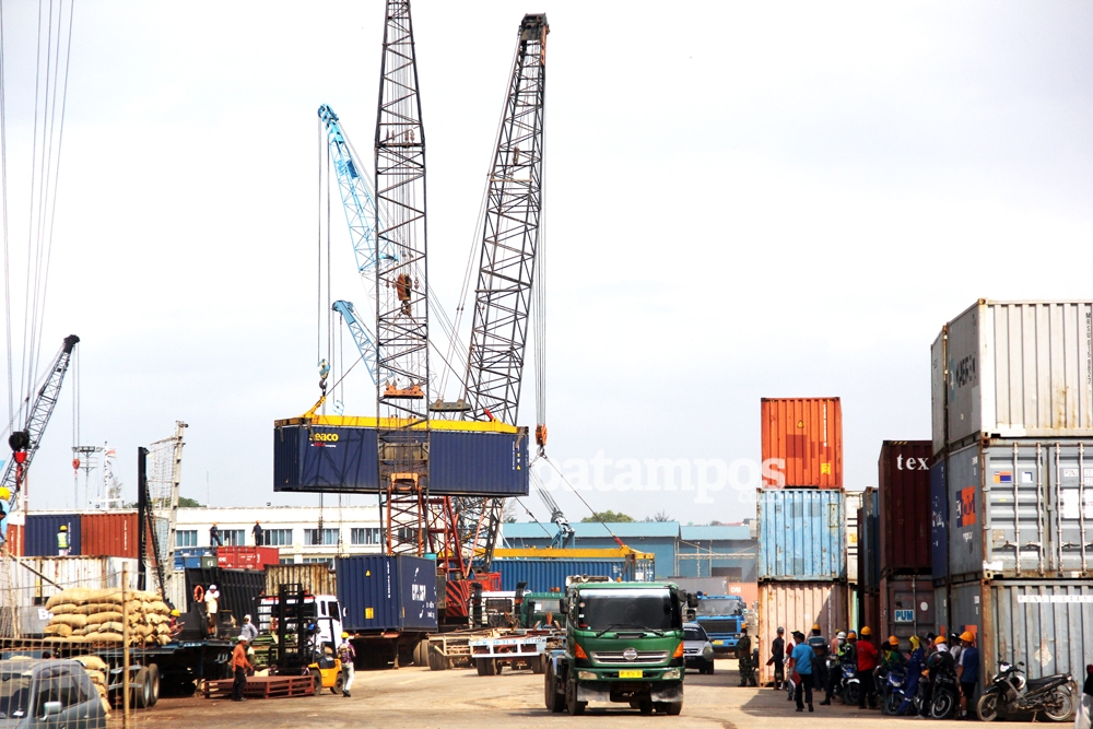 Sejumlah pekerja melakukan bongkar muat di pelabuhan Batuampar, Beberapa waktu lalu. | Cecep Mulyana/Batam Pos
