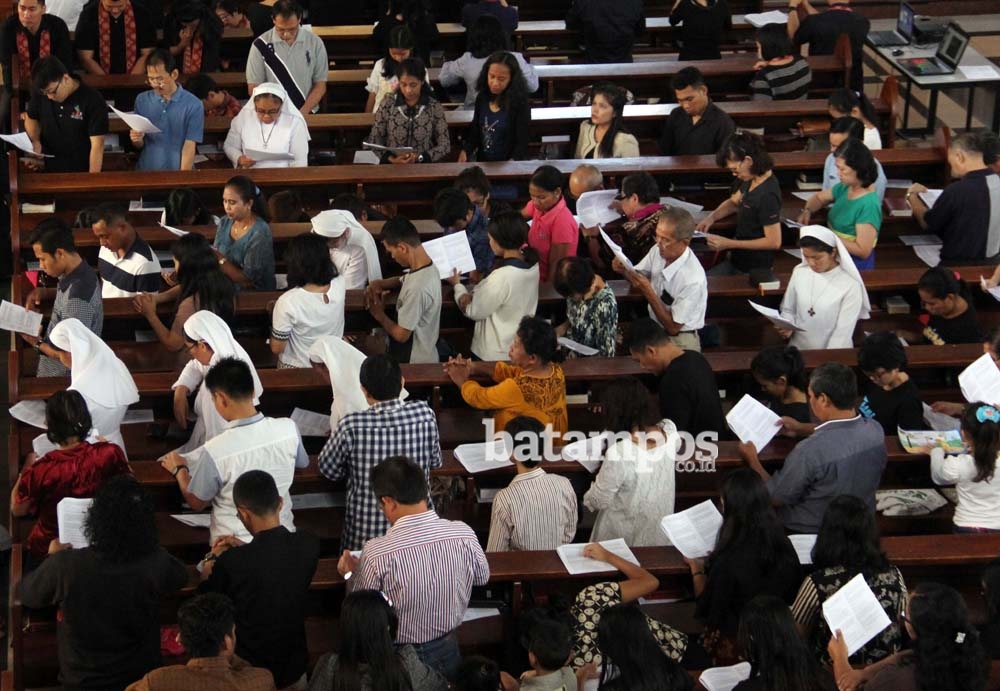 batampos.co.id – Prosesi jalan salib sebagai peringatan peristiwa penyaliban Yesus berlangusng hikmah di gereja Maria Bunda Pembantu Abadi (MBPA), Jumat (30/3) pagi. Ribuan umat berjubel mengelilingi gereja merenungkan kisah sengara Yesus untuk menebus dosa dan kesalahan manusia.
