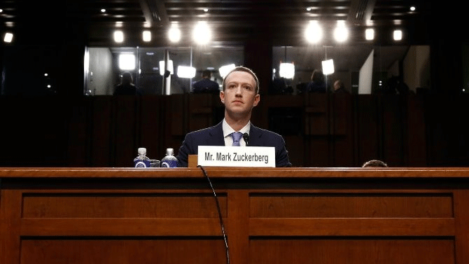 Mark menghadapi sidang Kongres Amerika Serikat (AS) di Capitol Hill, Washington pada Selasa, (10/4/2018) waktu setempat.