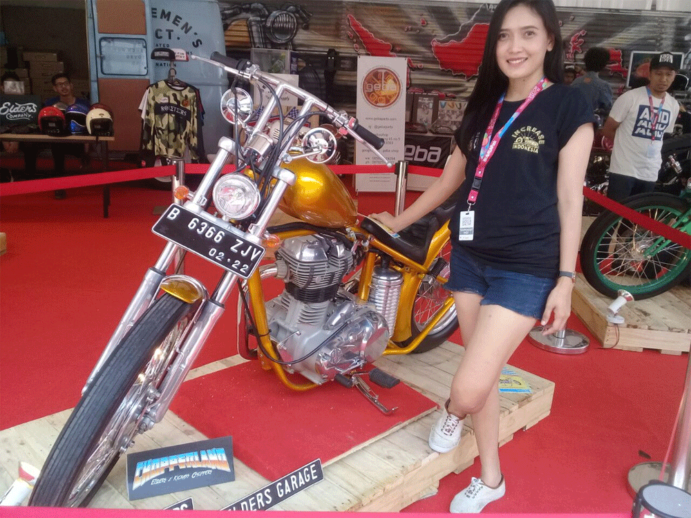 Bersanding dengan sepeda motor classic Honda CB 125 milik Gibran Rakabuming Raka, putra sulungnya, sepeda motor bergaya chopper itu menjadi daya tarik tersendiri bagi pengunjung di lokasi IIMS itu.