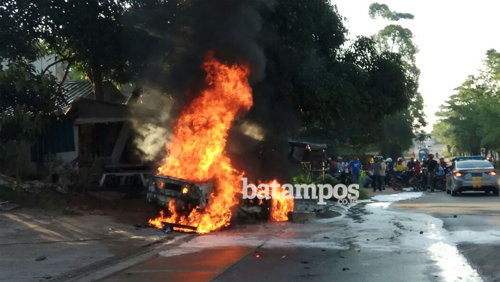 Budi Arianto, seorang petugas pemadam kebakaran Pos Sagulung mengatakan, mobil sedan itu menghindari motor yang lawan arah, hendak masuk ke SPBU. Supir sedan banting stir ke kiri, lalu nyemplung parit.