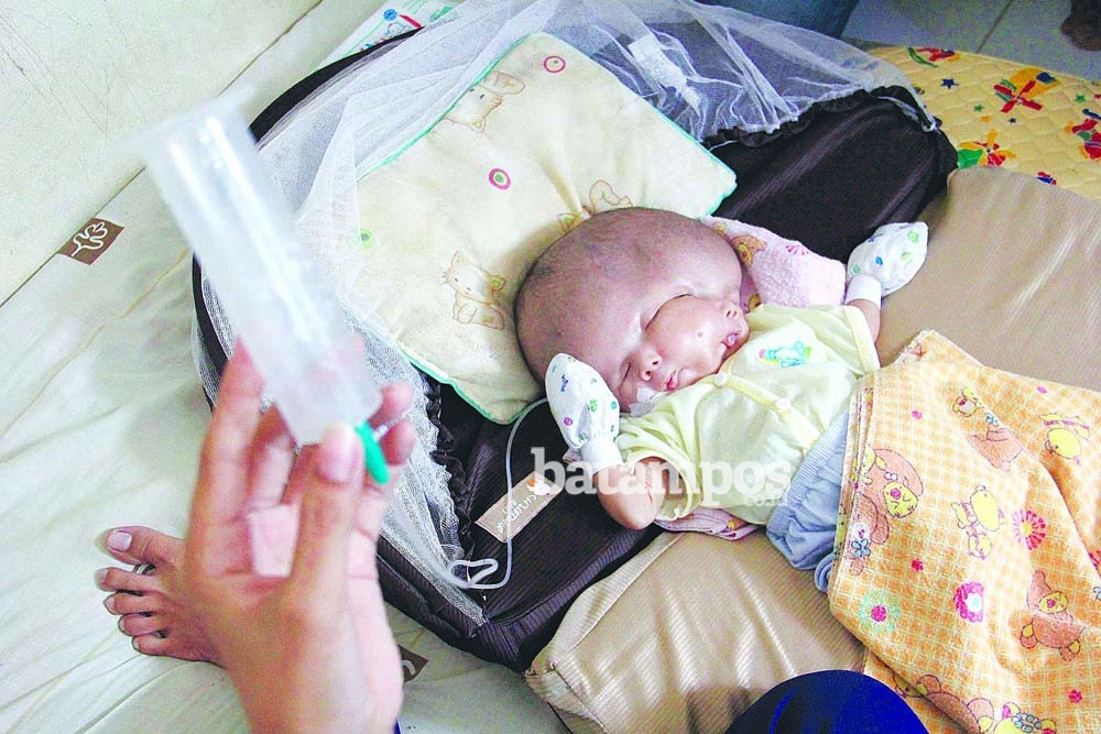 Saat ini, Gilang hanya bisa dirawat jalan di rumahnya. Di usianya yang memasuki dua bula, berat badan Gilang hanya 4 kilogram. “Dia makan menggunakan selang, selangnya harus diganti dua kali sehari,” ucap Erni.