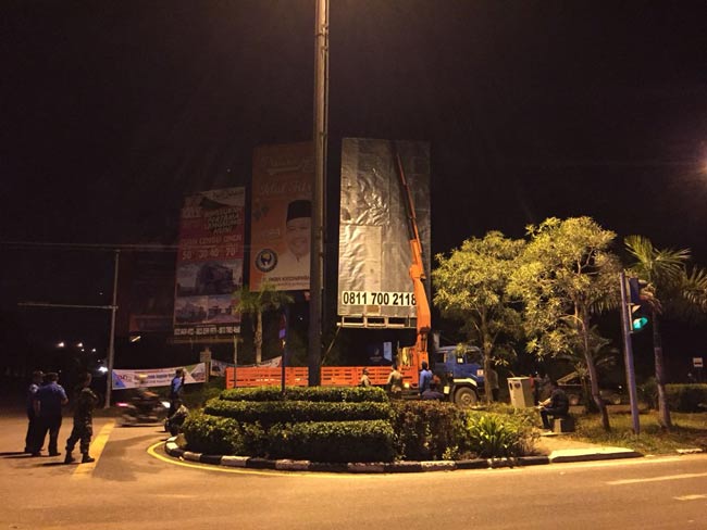 “Jumlah reklame yang ditertibkan pada malam kemarin sebanyak 6 buah, dengan rincian ukuran reklame 4×6 meter 2 buah, ukuran 5×10 meter 4 buah dan tuntas hingga jam 4 dini hari,” ujarnya. (leo)