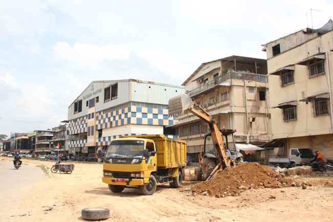 Dinas Bina Marga Kota Batam melakukan pemeratan tanah yang berada dikawasan Jodoh Boulevard, Selasa (7/8). Pemko Batam berencana akan menata kemabali kawasan Jodoh Boulevard tersebut. F Cecep Mulyana/batam Pos