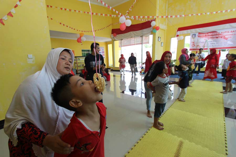 batampos.co.id – Anak-anak berkebutuhan khusus biasanya hanya jadi penonton saat perayaan Dirgahayu Republik Indonesia. Kamis (16/8) lalu di Pusat Layanan Autis (PLA) Batam, mereka menjadi peserta utama. Tidak ada ejekan maupun tawa yang merendahkan kondisi mereka. Hanya ada tawa bahagia, tawa keseruan.