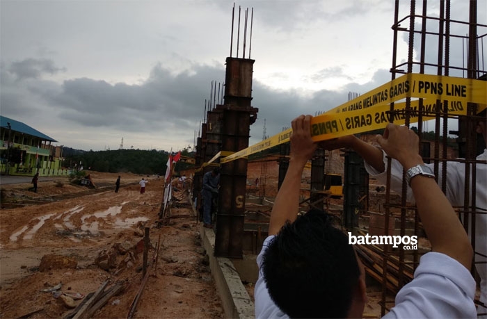 Di atas bangunan tersebut petugas Penyidik Pegawai Negeri Sipil (PPNS) dari Pemko Batam membentangkan pita berwarna kuning bertuliskan PPNS Line sebagai tanda aktivitas dihentikan.