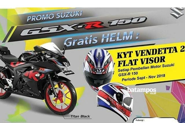 Melihat kondisi tersebut, PT. Suzuki Indomobil Sales (SIS) kembali mewujudkan permintaan konsumen dengan mengakomodir tren tersebut dengan cara memberikan hadiah langsung berupa helm fullface KYT Vendetta 2 Flat Visor berdesain khusus yang berlaku bagi setiap konsumen pembeli Suzuki GSX-R150.
