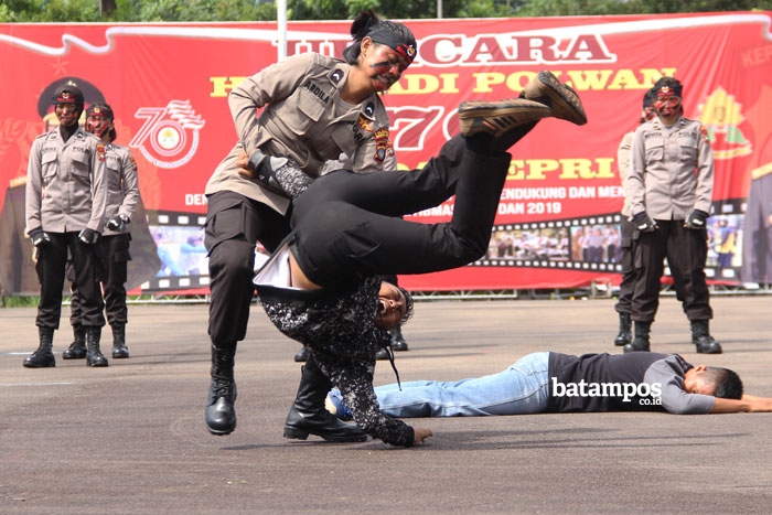 Peringatan HUT ke-70 Polwan kemarin juga diselingi atraksi para polwan Polda Kepri. Mulai dari atraksi beladiri Muangthai, tarung drajat, hingga karate. Aksi mereka tak kalah dengan polisi laki-laki. Jurus kuncian, bantingan, hingga pukulan mematikan dapat mereka peragakan dengan sempurna.