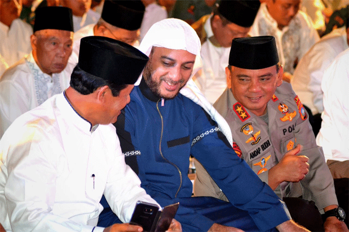 ” Syeikh Ali Jaber memberikan tiket Umrah gratis kepada anggota saya. Saya bangga dengan hal ini,” ujar mantan Kapolda Maluku ini.