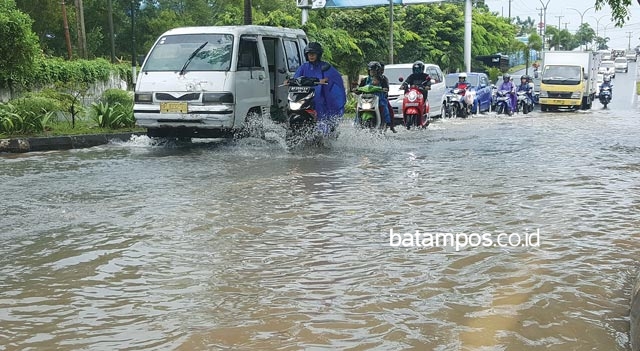 batampos.co.id – Hujan yang mengguyur Tanjungpinang selama lebih kurang tiga jam, Rabu (19/9) kemarin membuat beberapa ruas jalan mengalami banjir. Salah satunya di ruas Jalan DI Panjaitan, Batu 7 Tanjungpinang. Banjir setinggi kurang lebih 30 sentimeter tersebut menimbulkan kemacetan.