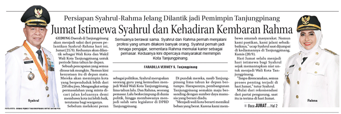 Gedung Daerah, akan menjadi saksi bisu dari proses pelantikan Syahrul-Rahma. Keduanya menjadi pasangan Wali Kota dan Wakil Wali Kota Tanjungpinang, selama lima tahun ke depan.