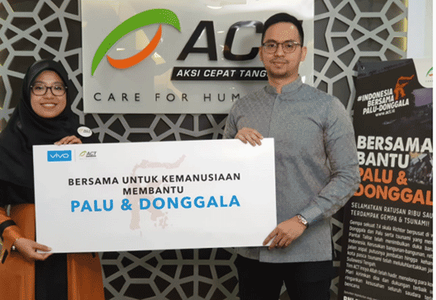 Untuk meringankan beban masyarakat terdampak gempa dan tsunami, Vivo Indonesia memberikan donasi sebesar Rp 4 miliar yang disalurkan melalui Tim Aksi Cepat Tanggap (ACT).